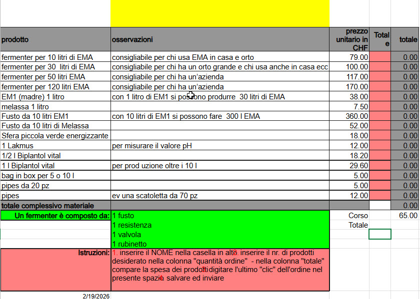 Consultate la lista del materiale allegata e scegliete ciò che vi occorre. Vi chiediamo di indicare nel formulario d’iscrizione, alla voce “osservazioni”, il materiale desiderato.